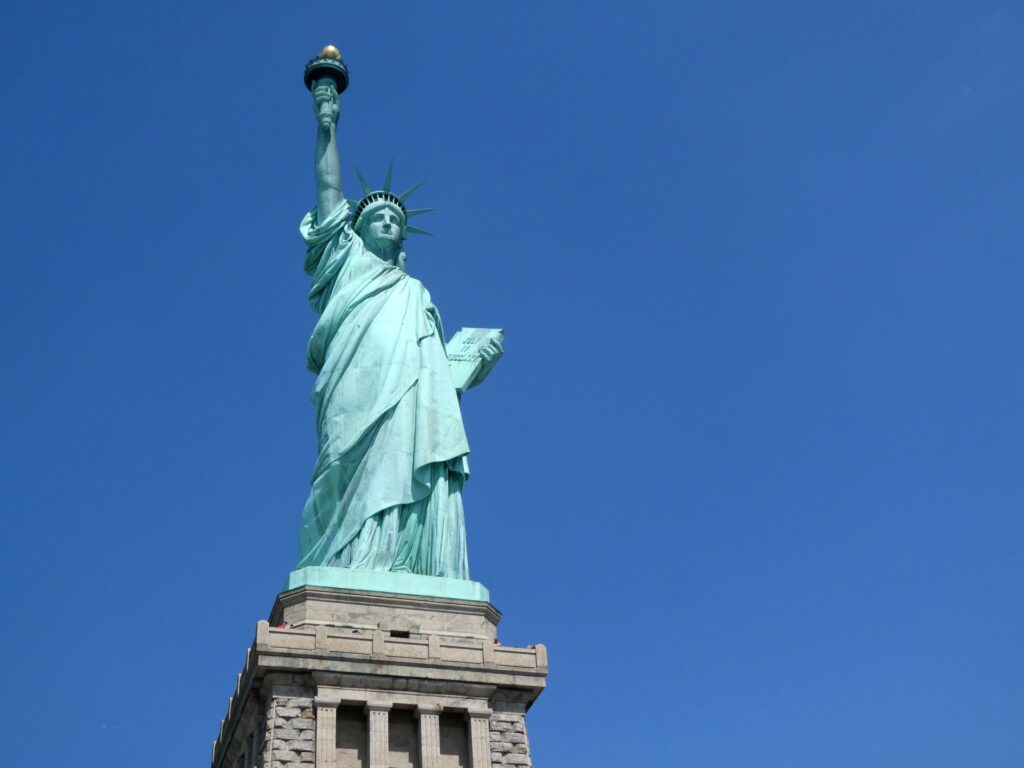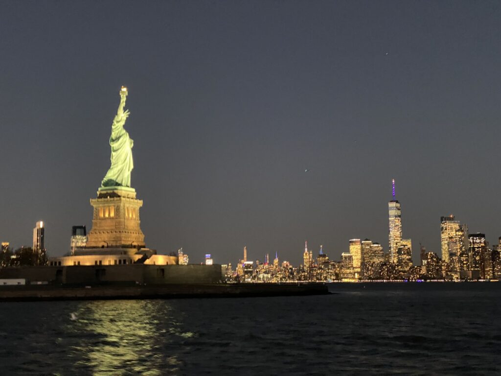 豆知識:像の設計はフランスの彫刻家フレデリック・オーギュスト・バルトルディ、内骨格はエッフェル塔の設計者ギュスターヴ・エッフェルが担当。 フランスで組み立てた後、解体して船でアメリカへ運ばれ、1886年10月28日にグロバー・クリーブランド大統領により献呈されました。 内部は博物館になっており、台座から展望台まで登れます。
