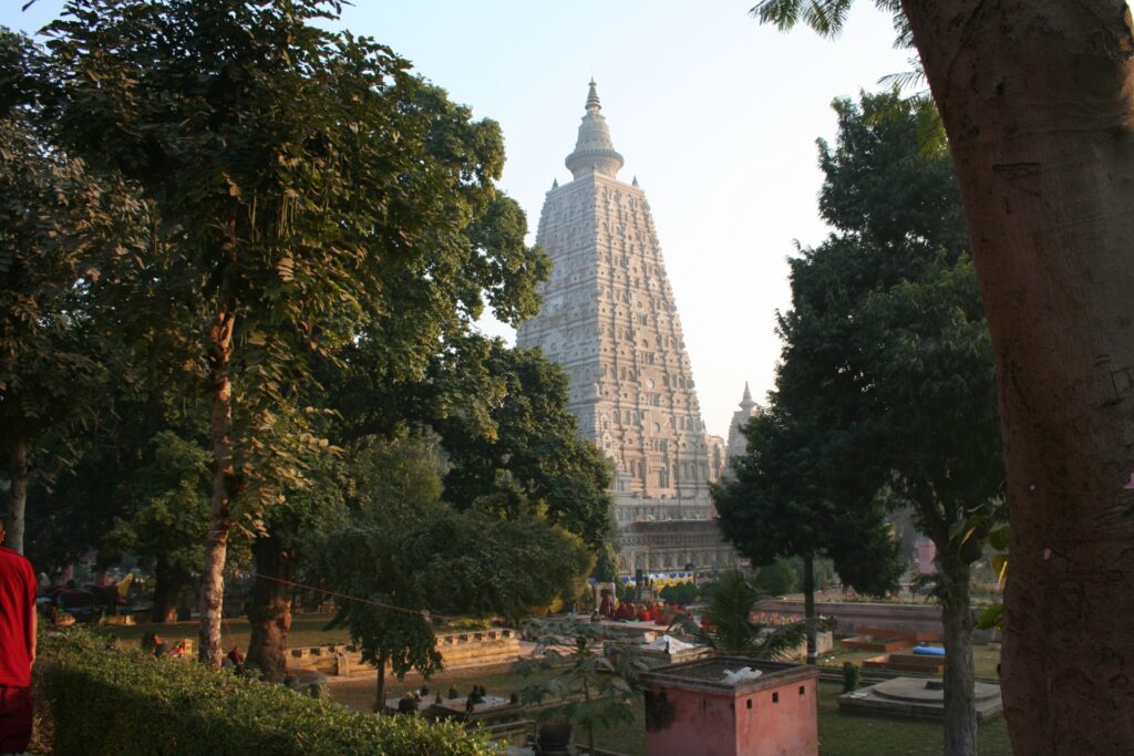 (写真4枚挿入: 菩提樹、大菩提寺本堂、周辺の僧侶、遠景)