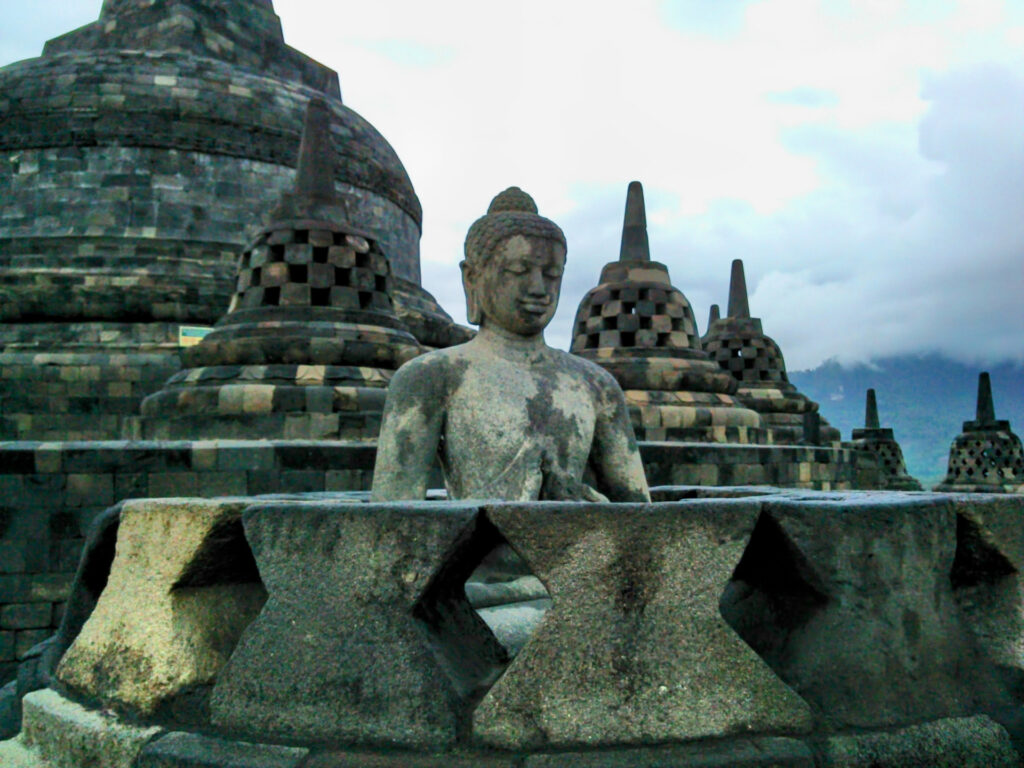 ボロブドゥールは、8〜9世紀にシャイレーンドラ朝が建立した世界最大級の仏教ストゥーパで、1991年にUNESCO世界遺産(文化遺産)に登録されました。 火山灰に埋もれていたものを19世紀に再発見。 基壇から頂上まで9層のストゥーパが積み上がり、全体がマンダラを表しています。
